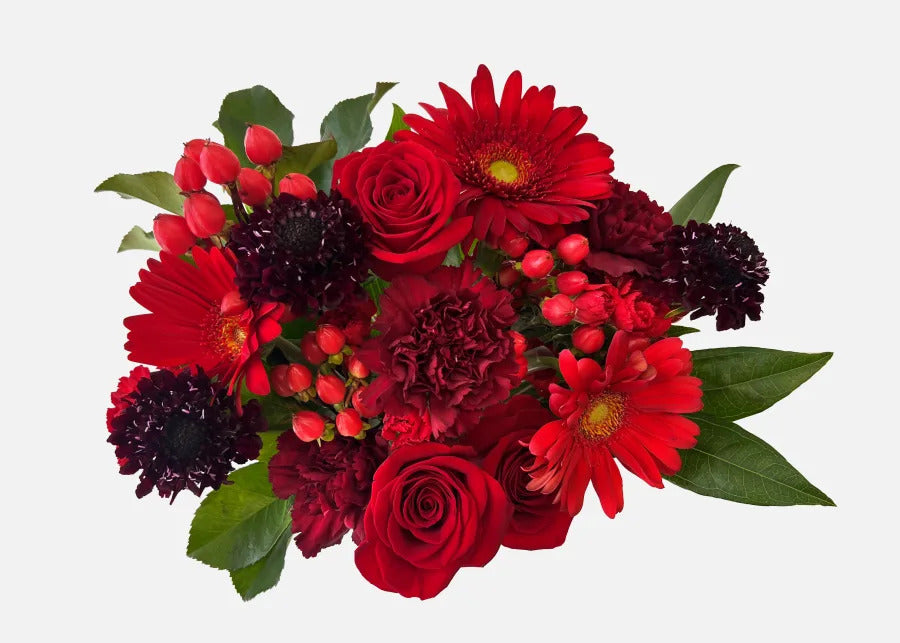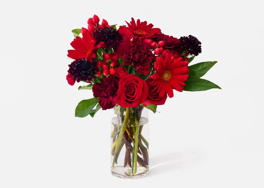 Introducing a fall-inspired bouquet that overflows with the vibrant, rich hues of crimson red. Every stem is thoughtfully chosen to capture the warmth and depth of the season, creating a striking arrangement that embodies the spirit of fall.